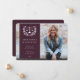 Una invitación de fotos de graduación formal pero moderna para celebrar a los que obtienen un título de Médica Juris. Con una foto de color con una balanza y una balanza de ley (con la abreviatura "JD") rodeada de una corona de laurel en blanco. El texto de la plantilla para los detalles del graduado es completamente personalizable, por lo que se puede cambiar el tamaño del tipo de letra, el estilo, el color y la ubicación. La parte posterior presenta un fondo de color sólido y un texto de plantilla para un mensaje más largo. Si prefiere no incluir texto en la parte posterior, sólo debe eliminarlo antes de realizar el pedido. Si prefiere una foto en la parte posterior de la tarjeta, elimine el fondo coloreado y el texto de la plantilla y cargue su propia foto. El diseño está disponible en otros colores de mi tienda.