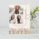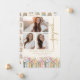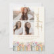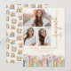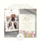 Anuncio de Graduación con Libros. Celebre este hito con estilo con un anuncio de graduación personalizado que muestra hermosamente tres de sus fotos favoritas en la portada, junto con ilustraciones de libros pintadas a mano con acuarela y delicadas flores silvestres de primavera y verano en tonos suaves de rosa, azul, verde y dorado. La fuente de máquina de escribir vintage y la escritura a mano dorada sobre un fondo marfil añaden un encanto literario atemporal de biblioteca. El patrón coordinado en la parte posterior une el diseño para una apariencia pulida y elegante. Personalice la redacción, estilos de fuente, tamaños y fondos para crear un recuerdo que refleje verdaderamente su viaje. Comparta su logro con un diseño tan único como su historia: comience a personalizar hoy mismo. (el texto "graduate" NO se puede cambiar)