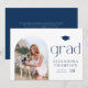 Anuncie su graduación a la familia y amigos con esta tarjeta de invitación de graduación de foto de personalizable. Presenta tipografía minimalista azul marino y marco fotográfico en arco Personaliza esta invitación de graduación de boho agregando una foto, nombre, escuela y otros detalles. Esta moderna invitación de graduación fotográfica está disponible en otros materiales.
