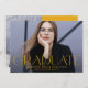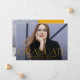 Anuncie su graduación de la escuela secundaria o universitaria con esta moderna invitación de graduación. La invitación de graduación muestra "Graduado" con letras amarillas de moda con el año de graduación mostrado dentro de la letra "d". Personalice la parte delantera de la invitación con la foto horizontal superior del graduado, su nombre y su escuela. La invitación se revierte para mostrar una foto adicional con espacio para su invitación/mensaje personalizado.