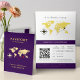 Embark on a journey to parenthood with this charming Passport to Motherhood baby shower invitation. The front of the card features a stylish passport design in deep purple, adorned with a world map graphic and a cute airplane icon, hinting at the exciting adventure ahead. The text "NAMES BABY SHOWER" adds a personal touch. The inside opens to reveal a full-color world map and all the essential details for the celebration, including "Passport to Motherhood," QR code for RSVP, date, time, and location. This unique and memorable invitation is perfect for parents who love to travel or are looking for a creative and engaging way to announce their little one's arrival.