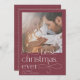 Comparte la noticia de tu compromiso en temporada de vacaciones con estas elegantes y festivas tarjetas de invitación de compromiso que incluyen una foto cuadrada con "mejores Navidades de la historia" con letras blancas. Personalice con su invitación (que se muestra con "estamos comprometidos") y los nombres que están debajo, y añada detalles adicionales a la parte posterior.
