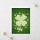 Celebre la suerte y el Día de San Patricio con elegante trébol de cuatro hojas y cinta color crema sobre un fondo de diamante verde.