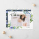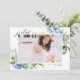 Anuncia tu graduación con este anuncio de graduación de foto floral que presenta hortensias azules a la acuarela, rosas marfil y azul polvoriento, y exuberante follaje. Diseñado para resaltar tu foto favorita de graduado, esta plantilla es la mezcla perfecta de clásico y moderno. Personaliza con tu nombre, escuela, año de graduación y un mensaje personalizado para compartir tu logro con familiares y amigos. Ya sea que lo envíes por correo o lo compartas digitalmente, este diseño floral hace que cada detalle se sienta especialmente especial.
