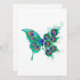 Mariposa pintada de forma artística, ficticia, verde, detallada, con plumas verdes, hermosas, de pavo real sobre fondo blanco.
