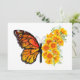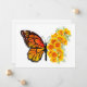 Naranja, mariposa monarca detallada con ala decorada con amapola californiana amarilla y vibrante sobre fondo blanco.