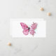 Arreglo floral de mariposa rosa con flores japonesas de cerezo rosadas sobre fondo blanco.