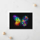 Arcoiris, mariposa monarca luminosa, pintada de forma artística con ramo de iridiscente, rosas brillantes y luminiscentes sobre fondo negro. Mariposa arcoiris.