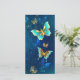Oro volador, mariposa de joyas sobre fondo textural azul. Diseño con mariposas.