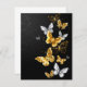 Oro, joyas y mariposas blancas sobre fondo negro. Mariposa dorada.