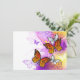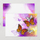 Naranja, mariposas monarcas detalladas sobre la luz, púrpura, pintoresco fondo pintado.