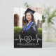 The back includes a simple photo space along with room for a personalized message celebrating the graduate’s accomplishments and next steps. While shown in a black-and-white palette, all elements can be customized to match school colors or personal preferences.