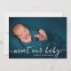 Introduce your little one in the sweetest way with this elegant “Meet Our Baby” photo birth announcement card. The design features a full-photo layout that highlights your newborn’s first portrait with modern handwritten script typography and a clean minimalist style.