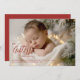 Celebra un hito verdaderamente especial con esta primera Navidad del bebé - ¡El regalo más grande es la tarjeta de festividad moderna! Esta impresionante tarjeta está diseñada para mostrar hermosamente una preciosa pequeña con una foto de sangre completa en la parte delantera, convirtiéndola en la estrella de los saludos festivos. Con un esquema de color rojo festivo, la palabra "regalo" se destaca elegantemente en la caligrafía moderna contemporánea, celebrando la llegada milagrosa que ha llenado los corazones. Este diseño minimalista y elegante también incluye plantillas de texto de personalizable directamente en el frente para el nombre del bebé, estadísticas de nacimiento y un mensaje corto opcional, lo que hace que sea increíblemente fácil de personalizar. La parte posterior de la tarjeta ofrece espacio adicional para un mensaje más largo y sincero, que le permite compartir más alegría con sus amigos y familiares. Perfecto para las primeras invitaciones navideñas del bebé o como un querido placer vacacional, esta tarjeta de foto personalizado mezcla elegancia moderna con un espíritu cálido y festivo. Comparte un gran regalo esta temporada con una tarjeta tan única y maravillosa como una nueva adición!
