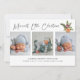 Tarjeta de anuncio de nacimiento de vacaciones rústica y elegante con 4 fotos de tu recién nacido con un texto de guión en la parte superior que dice "Navidades pequeños más graciosos" con un ilustracion acuarela de mistletoe y naranja en rodajas.