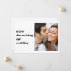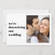 Un anuncio de boda moderno minimalista para informar a familiares y amigos de su lista de invitados extendida original que las circunstancias han requerido que reduzcan el número de invitados en su boda. En el frente, "estamos reduciendo el tamaño de nuestra boda" está escrito en tipografía simple junto a su foto favorita. En el reverso, puede personalizar su mensaje con más detalle y agregar cualquier transmisión en vivo, celebraciones futuras e información del sitio web de la boda.