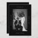 Minimalistic Modern Black & White "Just Married" 2-Photo Wedding Elopement Announcement Card. Add your names, elopement date, location, and your "we eloped" message for family and friends on the back.