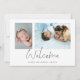 Minimalistas 2 Fotos Bienvenida El Anuncio De Nacimiento De Script. Simplemente reemplace las dos fotos de muestra con las suyas y personalícelas con el nombre y fecha de nacimiento de su bebé en la parte inferior y las estadísticas de nacimiento en la parte posterior. La bienvenida está en un guión elegante.