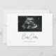 Minimalistic Black & White Script Baby Arriving Pregnancy Photo Announcement. Customize with your due date, baby name, ultrasound photo, and year on the front.