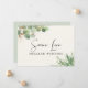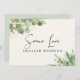 Si las circunstancias requieren que reduzcas el tamaño y el número de invitados en tu boda, puedes informar a tu lista de invitados extendida original con esta hermosa y moderna tarjeta de anuncio de boda reducida de crema ligera que presenta suaves acuarelas de hojas de eucalipto verde claro con acentos dorados y "Mismo amor, boda más pequeña" escrito en una tipografía moderna y script elegante en la parte delantera de crema ligera. En la parte trasera de verde salvia claro puedes personalizar fácilmente el mensaje de reducción de la boda con más detalle y agregar cualquier transmisión en vivo de la ceremonia, celebraciones futuras e información del sitio web de la boda.