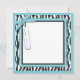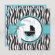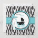 Estilo boutique con estampado de cebra y puntos con acentos turquesa y un carro de bebés.