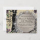 Un elegante vestido negro sobre un fondo dorado con flores moradas y remolinos decorativos junto con un círculo plateado floreciente donde se puede personalizar el evento. Elegante vibración de chicas.