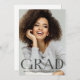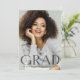 Tarjetas de invitación de graduación "Photo" modernas y audaces, con elementos de diseño de estilo de moda oscura transparente que dicen "GRAD", junto con una tipografía minimalista. La foto del graduado en la parte delantera de la tarjeta resalta toda la superficie. La parte posterior de la tarjeta ofrece espacios de texto personalizados para obtener información sobre su graduación y viaje futuro. Perfecto para estudiantes de secundaria, universitarios y universitarios.