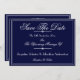 Sencillo Guión De Moda Personalizado Nombres Elegantes Azul Y Blanco De La Marina Guardar La Tarjeta De Anuncio De Fecha. Haga clic en personalizar esta plantilla para personalizar con los nombres de novias y novios, la fecha, el mensaje si desea cambiar el mensaje y la dirección del sitio web, todos se personalizan de forma rápida y sencilla. Sencilla elegancia romántica salva la fecha para un hermoso look clásico de moda con elegante decoración elegante con elegantes letras de guión blanco en un elegante fondo azul marino. Simple clásico moderno guardar las tarjetas de anuncio de fecha, son perfectas para anunciar su fecha boda. Simple Moda Script Names Navy Save The Date Anunciement, forma parte de la colección Bodas azul de la Marina en esta tienda, que ofrece una amplia gama de artículos a juego. Hermoso para una boda de invierno, una boda de primavera, un boda de verano o una boda de otoño. Garantía de devolución de 30 días. Barcos Alrededor Del Mundo Rápido. Un Guión De Moda Simple Llama A La Armada Para Guardar El Anuncio De Fecha. Creado por el artista original RjFxx *Copyright *Todos los derechos reservados. #Bodas #SaveTheDateAnnounctionCard #PersonalizedSaveTheDate