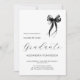 Modern Black and White Simple Bow Photo Graduation Announcement design features elegant script calligraphy typography paired with a soft ribbon illustration that creates a refined coquette aesthetic. The minimalist black and white palette keeps the layout clean and timeless, while the delicate bow detail adds a feminine and chic touch. The combination of bow artwork and script typography creates an elegant, modern design style that works beautifully for personalization and special occasion.