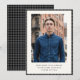 Share the milestone with a classic photo graduation announcement featuring a black check border on the front and a coordinating patterned back. The clean layout keeps the focus on the graduate while highlighting school and class year details. Perfect for mailing to family and friends to celebrate this achievement. Personalize with name, college, and graduation year.