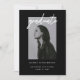 Modern Bold Black Script Photo Graduation Announcement Card. Personalize with graduate's photo, name, school, year of graduation, and custom message on the back.