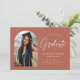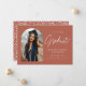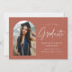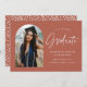 Trendy graduation announcement featuring the graduate's photo framed by a clay-colored arch with "Graduate" in a white handwritten script. Personalize the front of the arch graduation announcement card by adding the graduate's name, graduation year, school name, and future plans. The photo graduation announcement reverses to display a red clay and white dotted pattern. The announcement is suitable for both high school and college graduates.
