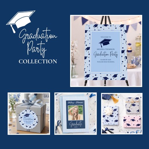 Modern Blue White Graduation Party Celebration Diseñado por Melissa G