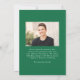 Share your graduate’s achievement with this Modern Green Frame Photo Graduation Announcement, featuring a rich green border that adds a timeless, collegiate-inspired touch to the clean layout. “Graduate” is displayed in refined serif lettering across the top, creating a strong yet sophisticated statement above the graduate’s vertical photo centered on the design. Their name, school, and graduation year are arranged below in a crisp, balanced format that keeps the focus on both the portrait and the milestone. The reverse side showcases a horizontal photo with space for personalized text, making it ideal for including graduation party details, future plans, or a heartfelt thank you message. Designed for both high school and college graduates, this modern photo graduation card offers a polished and distinguished way to commemorate this important accomplishment.