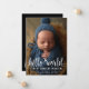 A hand-lettered hello world photo birth announcement postcard to welcome your new arrival. Send out this card to friends and family so they can see your new bundle of joy.