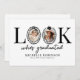 Celebrate a milestone in modern style with this quirky graduation announcement card. Featuring a clean white background and the fun saying “look who’s graduated”, the design cleverly uses the “O” as a photo frame, accented with a chic black bow and a graduation cap for a playful yet elegant touch.