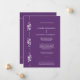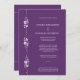 This modern wedding invitation features a dark purple background paired with crisp white typography for a clean, elegant look. A vertical decorative panel along one side showcases a minimalist floral motif with stylized blossoms, flowing vines, and dotted accents, adding a touch of romance without overwhelming the design. The layout is airy and well-balanced, with contemporary sans-serif lettering and a refined ampersand that gives the invitation a sophisticated, upscale feel. Overall, the design blends modern simplicity with subtle floral elegance, making it suitable for a classic yet contemporary wedding celebration. The RSVP info is included for brides on a budget. If you would like a separate RSVP, please send me a message.