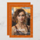 Elegant orange graduation photo announcement with a mathematics background and a message that you can personalize too at the back of the card. Illustrated and designed by Patricia Alvarez.