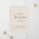 A minimalist modern beige announcement card with simple typogrpahy to share the news of your pregnancy to family and friends.