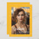 Elegant yellow graduation photo announcement with a mathematics background and a message that you can personalize too at the back of the card. Illustrated and designed by Patricia Alvarez.