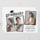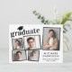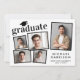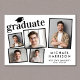 Moderna invitación de graduación con un collage de 5 fotos de imágenes dispersas en cuadros, "graduados" en tipografía de moda en negrita y el nombre del graduado, año escolar y curso de clase en tipografía simple.