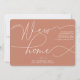 Una manera simple pero hermosa anuncia tu movimiento. El diseño presenta un fondo de óxido moderno con un encabezado que dice "Tenemos un nuevo hogar" en una combinación de fuentes de moda. Personalice su dirección y sus nombres en la parte delantera y, en la parte posterior, puede agregar otro mensaje a sus amigos y familiares.