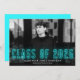 Anuncie el logro especial de su graduación con nuestros anuncios de graduación de neón. La moderna invitación de graduación muestra la foto horizontal del graduado con "Clase de 2023" en letras de neón cian. Personalice la invitación de graduación del neón añadiendo el nombre del graduado y el nombre de la escuela. La invitación se invierte para mostrar un fondo cian sólido con espacio para fotos y/o texto adicionales. La invitación de graduación fotográfica es perfecta tanto para graduados de secundaria como universitarios.