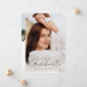 Anuncie los logros de su graduado y los planes futuros con esta elegante y moderna invitación de graduación fotográfica. La parte delantera de la invitación muestra la foto vertical de sangre completa del graduado. "Graduado" se muestra en un guión negro a la moda y escrito a mano. Personalice la invitación con el año de graduación, el nombre del graduado y el nombre de la escuela. La invitación se invierte para mostrar una foto adicional con el texto de su personalizado que se muestra abajo con letras negras. Esta invitación de graduación fotográfica es perfecta para graduaciones de secundaria o universitarias.