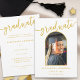 Celebre el Colegio de su hija o el Graduado de la escuela secundaria con una tarjeta de Invitación para la graduación de la de estilo moderno en forma de arco fotográfico. Honre el logro académico de su hija con estilo con esta elegante foto en arco del Modern College o la tarjeta de Invitación de graduación de la escuela secundaria, diseñada exclusivamente por la artista Catherine Sweetman. Esta tarjeta de graduación personalizada incluye caligrafía de escritura de oro de moda en un fondo blanco clásico, creando un aspecto atemporal y sofisticado perfecto para cualquier graduado. El anverso de la tarjeta muestra el nombre de su hija y los detalles de su graduación con llamativas letras doradas, mientras que el dorado con arcos en blanco elegante añade un toque único y contemporáneo. Personalizar fácilmente la plantilla con una preciada foto de tu graduado, lo que lo convierte en un conservador verdaderamente personal. La parte posterior de la tarjeta incluye espacio para detalles adicionales de graduación o un mensaje sincero, establecido en la tipografía moderna para una presentación limpia y pulida. Perfecto para mandar correos a amigos y familiares o incluso con invitaciones para fiestas de graduación, esta invitación de graduación fotográfica es una manera elegante de compartir su orgullo y alegría. Ideal para graduaciones de secundaria, universitarias o universitarias, elogios de trabajo y otras celebraciones de graduación, esta tarjeta es una manera memorable de marcar este importante hito.