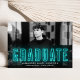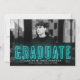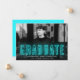 Anuncie el logro especial de su graduación con nuestros anuncios de graduación de neón. La moderna invitación de graduación muestra la foto horizontal del graduado con "Graduado" en letras de neón cian. Personalice la invitación de graduación del neón añadiendo el nombre del graduado, el nombre de la escuela y el año de graduación. La invitación se invierte para mostrar un fondo cian sólido con espacio para fotos y/o texto adicionales. La invitación de graduación fotográfica es perfecta tanto para graduados de secundaria como universitarios.