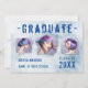 Guay, estilo moderno grunge, 4 fotos - tarjetas de invitación de graduación de doble cara en tonos azules. Este diseño único y personalizado presenta sus fotos personales, nombre, año de graduación y nombre de la escuela secundaria, universidad o universidad pintados en una pared de estilo angustiado.