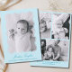 Esta moderna tarjeta minimalista elegante de luz azul recién nacido para el anuncio de nacimiento es moderna y elegante. La tarjeta totalmente personalizable incluye una foto en la parte delantera con el nombre de su bebé, estadísticas de nacimiento y nombres de sus padres. La parte de atrás muestra un collage de tres fotos. Perfecto para compartir su alegría, este diseño minimalista de coquetas es ideal para anuncios de bebés sin diferencias de género. Celebra a tu recién nacido con esta sencilla y elegante tarjeta de invitación.