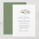 Este diseño moderno presenta una rama de olivo única y fuentes mixtas hermosas. Su acuarela limpia y sin desorden y tonos verdes atenuados son perfectos para un anuncio de boda clásico y elegante.