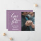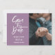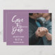 Guión blanco moderno, Wedding Save the Date Photo Card. Características, moda polvorienta de fondo de color lavanda y plantilla de foto única en el frente.
